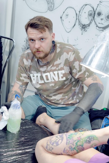 “Na konvenci byla zdá se mi nižší návštěvnost. To je škoda, protože v soutěži byly hodně dobrý práce i když ne věchny vyhrály to co měly. Dělení kategorií je bohužel neaktuální pro současnou scénu, to se pak špatně vybírá, kam kérku přihlásit. Jinak se u nás sešla spousta super lidí, kteří se přišli podívat, podpořit tatéry a pokecat. Dík! Jo a dobrý bylo, když nám paní chválila samolepky, vzala si jednu s motivem od Ivy a ptala se, jestli nemáme nějakou se jménem Kristýna.“ Simon