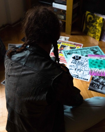 To co jsem vždycky tvořil bylo z velké části ovlnivněno metal/punk scénou, všechny ty covery a loga, ziny a jiný fetish. Fascinovala mě uniformovanost, ale zároveň silná vyhraněnost od zbytku mainstreamu. Proto některé motivy co teď dělám připomínaj čerty z trik death metalových bandů, další víc punkové nihil výkřiky. Šest let jsem tetoval doma a teď jsem v Tribu. První větší kérky byly na spolužáky a kámoše ze školy, pankáče a metloše z kapel ve kterých hraju.