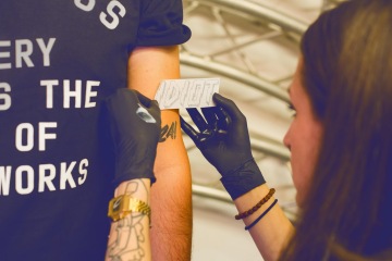 V: Prostě nápad, baví mě jakoby destabilizovat ten klasickej postup. Mě nezáleží na tom, aby to tetování bylo nějak precizní, je mi jedno, že se neznáme, je jedno, kdo mě kéruje.
