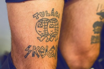 V: Tím myslim Skeleton, což je můj metalovej dětskej fanzin a Tuláci, to byl můj první skautskej oddíl. A postupně to doplňuju, tak teď si nechávám dělat kérku IDIOT, což je moje předchozí sólová deska.