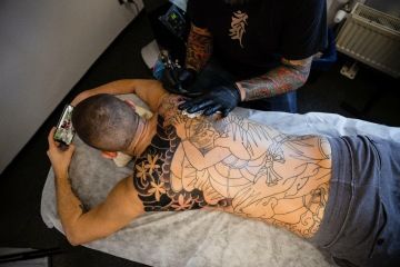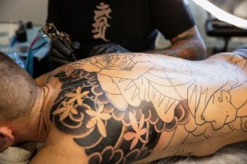 I used to be afraid to draw directly on the skin, because I wanted everything to be perfect. So I used to made stencils, but I found for me It almost never fit the body properly. For instance, when you draw a samurai, the proportions you'd draw on paper are not the same as on the human body. It has to go down to the back of the legs and you are on this 3D form so the proportions change. I drew on the backgrounds for many years but would make a stencil of the main image. Several years ago, I began doing 100% freehand tattoos, and I saw immediate improvement. The body tells you where to put things, you can see it on the body. You see what's gonna look good. For instance, which way the body of a snake should flow on the arm is dictated by the person’s muscles and curves. The body tells you what to do if you pay attention. But you also have to be prepared, practise a lot and be comfortable with the images. If you don't know how to draw dragon on paper you will probably not draw a dragon very well on the body.