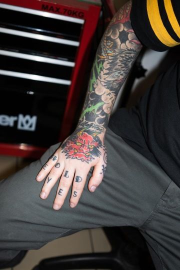 Vojta Balej tetuje od roku 2013 a nejradši dělá traditional. Nebrání se ale ničemu, baví ho všechny styly a tetování bere hlavně jako řemeslo.