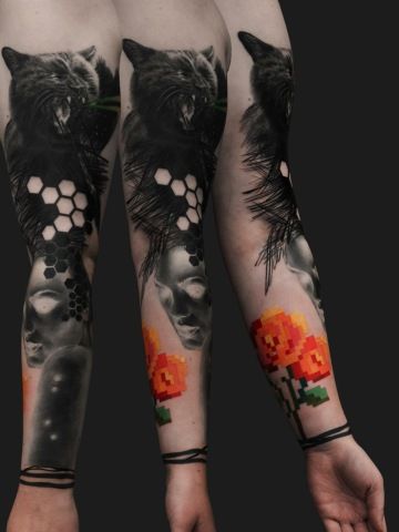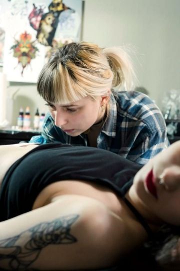 Monika studuje v ateliéru keramiky a porcelánu u Maxima Velčovského na pražské VŠUP. Tetování se věnuje zhruba od roku 2014. „Začala jsem jako samouk. Nejvíce mě baví a fascinují koláže a surrealistická tetování, jak černobílá, tak i barevná. Ocenila bych, kdyby lidé akceptovali autorské návrhy, ve kterých se kromě realistického stylu prolínají i další prvky.“
